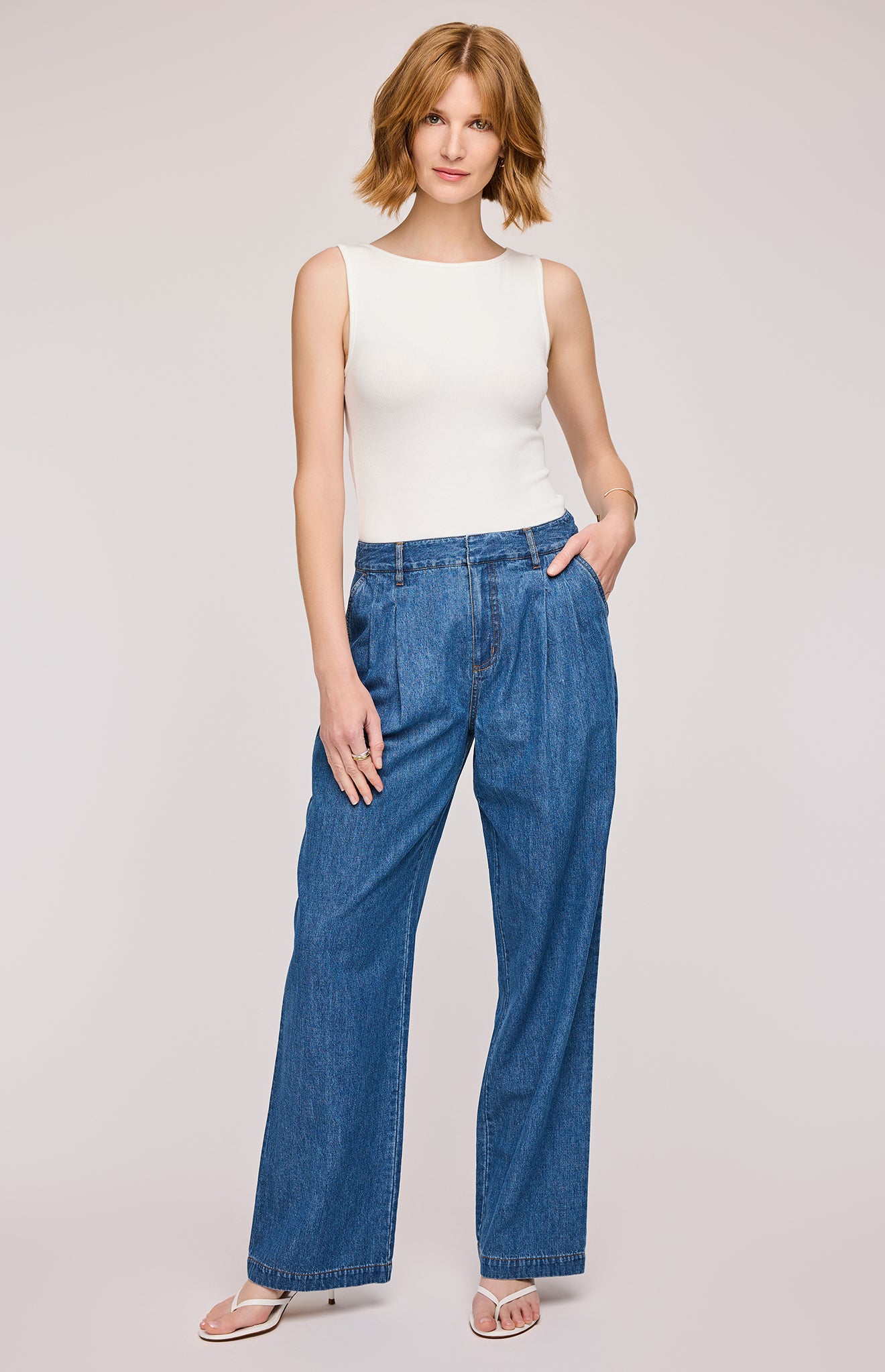 The Naia tank is made of a stretchy ribbed fabric that hugs the body. The effortless silhouette is perfect for everyday wear or dressed up for date night.